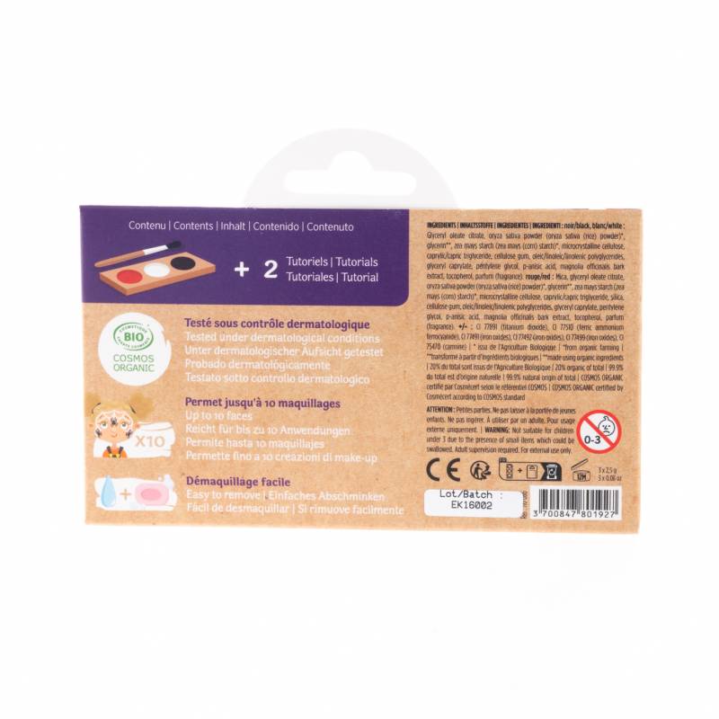 Τρόπος χρήσης: Προσθέστε λίγο νερό στα χρώματα και απλώστε στο δέρμα χρησιμοποιώντας το πινέλο ή ένα σφουγγάρι. Αφαιρέστε εύκολα το χρώμα με ζεστό νερό και λίγο σαπούνι. Μετά τη χρήση, αφήστε τα αξεσουάρ και την παλέτα χρωμάτων να στεγνώσουν πριν τα βάλετε στο κουτί. Η βαφή προσώπου διατηρείται έως και 12 μήνες μετά το άνοιγμα.